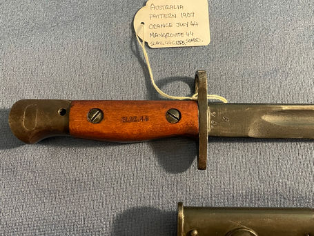 Sword bayonet for use with the .303 caliber Short, Magazine Lee-Enfield No. I Mk. III (SMLE) rifle. The No. I Mk. III rifle was the Australian mainstay during both World Wars and afterward, until superseded by the L1A2 (FN-FAL) selective-fire rifle.