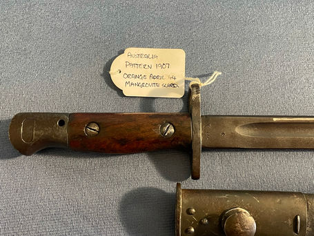 Sword bayonet for use with the .303 caliber Short, Magazine Lee-Enfield No. I Mk. III (SMLE) rifle. The No. I Mk. III rifle was the Australian mainstay during both World Wars and afterward, until superseded by the L1A2 (FN-FAL) selective-fire rifle.