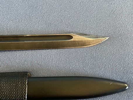 Scabbard is excellent, original finish is all there apart from a few scrapes in the paint. P37 frog that has been blancoed for parade use is in excellent condition.